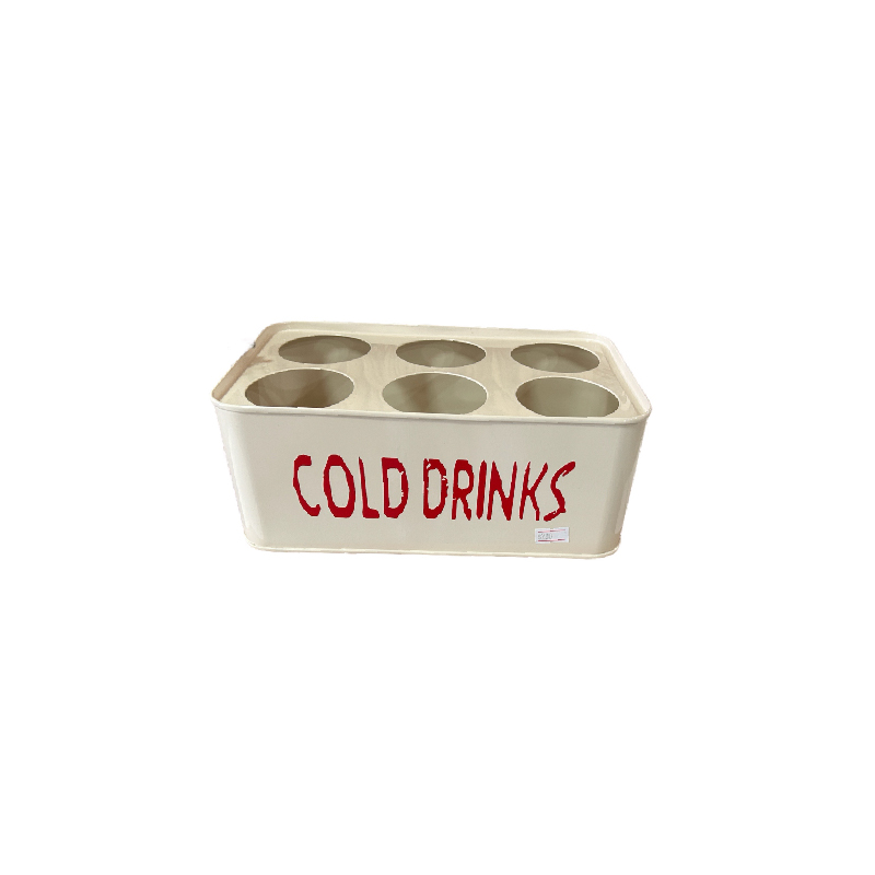 Contenedor de metal para enfriar bebidas color crema y rojo. Medidas 30x20x14cm.